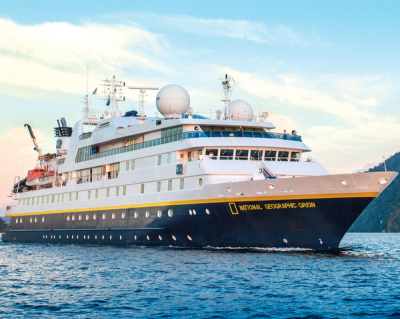 Featuring 53 cabins, the gracious and intimate National Geographic Orion takes travelers to little-known waters and islands in the South Pacific, Antarctica, and the Mediterranean, allowing them to experience each location's natural and cultural wonders up close. With her high ice-class rating, National Geographic Orion is strong enough to explore the polar regions, yet her enhanced maneuverability allows her to navigate practically anywhere accessible by sea. At the helm of National Geographic Orion is an expert crew, capable of handling intricate operations that large cruise ships could never attempt. The ship is equipped with modern navigational tools and technology that enable her to navigate safely, even in uncharted waters. She currently holds the distinction of having sailed farther south than any other vessel in the National Geographic-Lindblad fleet.